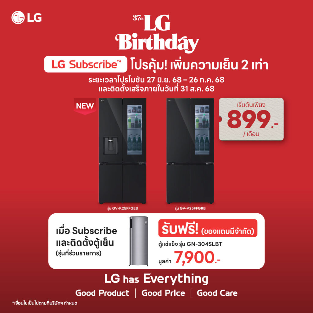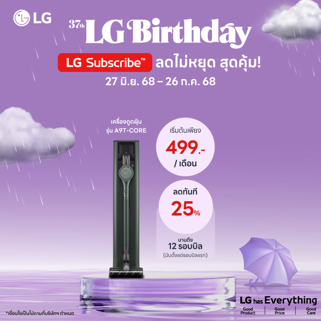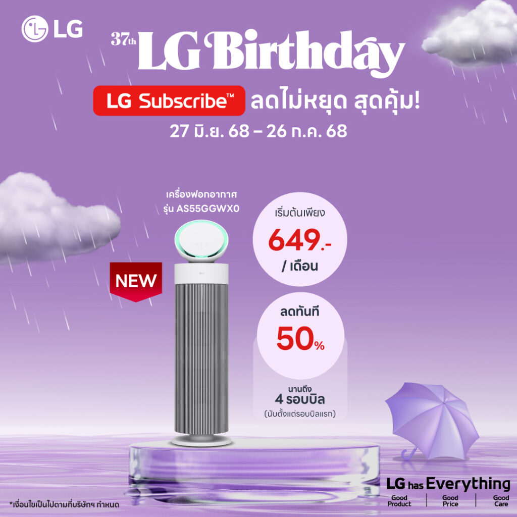 LG Subscribe ให้ลูกค้าเป็นเจ้าของเครื่องใช้ไฟฟ้าได้ง่าย โดยชำระเริ่มต้นหลักร้อย/เดือน ทำให้เราไม่ต้องใช้เงินก้อนและยังได้รับประกันสินค้ายาวนานขึ้น ตลอดอายุสัญญา แถมสินค้าบางรายการได้รับการดูแลบำรุงรักษาจากทีม LG โดยตรง ทำให้เราไม่ต้องกังวลกับการดูแลเครื่องใช้ไฟฟ้า และเหมาะกับสภาพเศรษฐกิจปัจจุบันด้วยค่ะ