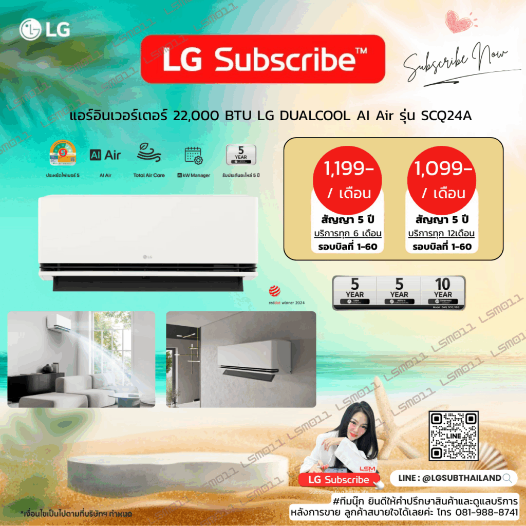 แอร์อินเวอร์เตอร์ 22,000 BTU LG DUALCOOL AI Air รุ่น SCQ24A