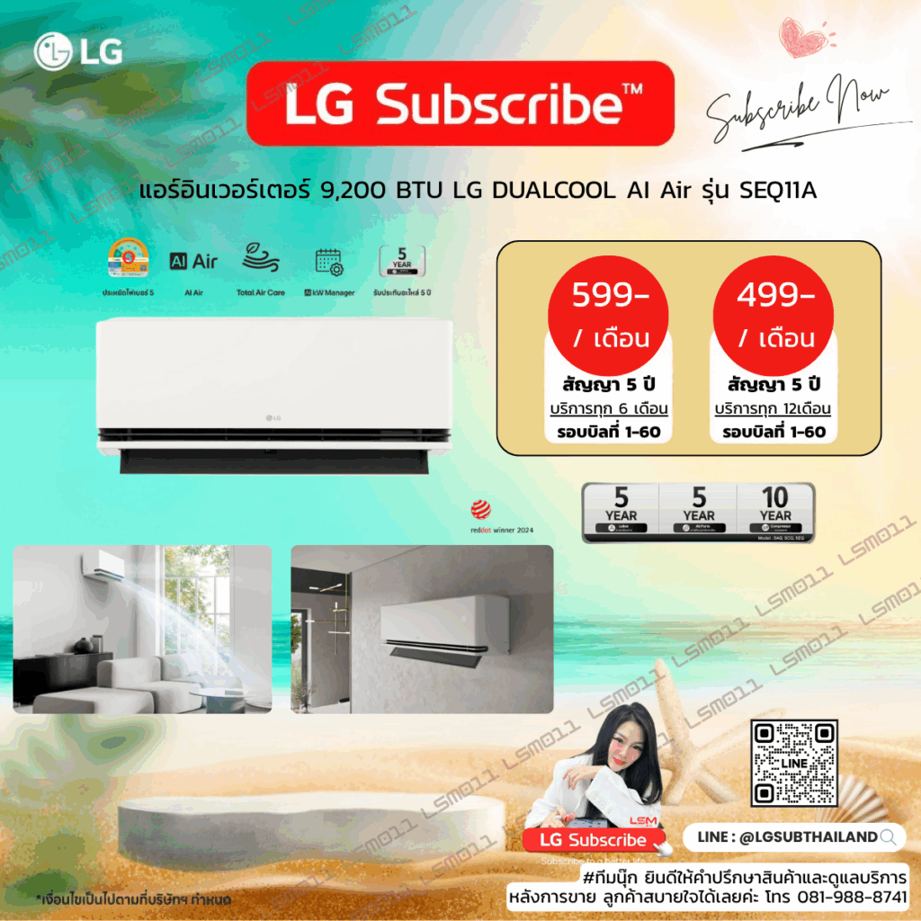 แอร์อินเวอร์เตอร์ 18,000 BTU LG DUALCOOL AI Air รุ่น SEQ18A